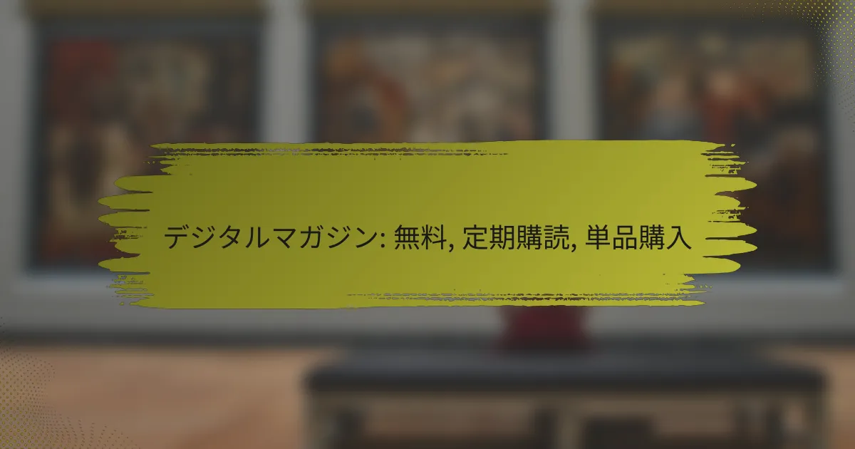 デジタルマガジンは、オンラインで手軽にアクセスできる雑誌で、PDF形式やインタラクティブなフォーマットで提供されます。無料で入手する方法としては、無料版やトライアルを利用することが一般的です。定期購読は安定したコンテンツを提供しますが、長期的なコミットメントが求められるため、自分のニーズに合った選択が重要です。 デジタルマガジンとは何ですか? デジタルマガジンは、オンラインで配信される雑誌で、通常はPDF形式やインタラクティブなフォーマットで提供されます。これにより、読者は手軽にコンテンツにアクセスし、最新の情報を得ることができます。 デジタルマガジンの定義と特徴 デジタルマガジンは、印刷物ではなくデジタル形式で発行される雑誌です。特徴としては、インタラクティブな要素や動画、音声コンテンツを含むことができ、読者により豊かな体験を提供します。 また、デジタルマガジンは、定期購読や単品購入が可能で、読者は自分の興味に合わせて選ぶことができます。これにより、コストを抑えつつ多様なコンテンツを楽しむことができます。 デジタルマガジンの利点 デジタルマガジンの主な利点は、アクセスの容易さとコスト効率です。インターネットがあれば、どこでも簡単に購読や購入ができ、印刷コストがかからないため、価格が抑えられています。 さらに、最新の情報をリアルタイムで更新できるため、読者は常に新しいコンテンツを楽しむことができます。環境への配慮もあり、紙を使用しないため、持続可能な選択肢とも言えます。 デジタルマガジンの種類 デジタルマガジンには、さまざまなジャンルがあります。ファッション、ビジネス、ライフスタイル、テクノロジーなど、多岐にわたるテーマが用意されています。 また、購読形式も異なり、月額定期購読や単品購入、さらには無料で提供されるものもあります。これにより、読者は自分のニーズに合った選択が可能です。 デジタルマガジンの利用シーン デジタルマガジンは、通勤中や休憩時間など、隙間時間に手軽に楽しむことができます。スマートフォンやタブレットを使えば、いつでもどこでもアクセス可能です。 また、特定のトピックに関する情報を深く掘り下げたい場合にも便利です。特に専門的な内容や最新のトレンドを追いたい読者にとって、デジタルマガジンは有用なリソースとなります。 …