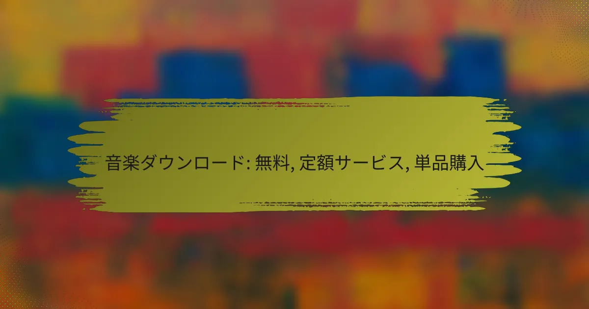 音楽ダウンロードは、インターネットを通じて音楽ファイルを取得するプロセスであり、ユーザーは好きな曲やアルバムをデジタル形式で保存して楽しむことができます。無料のダウンロードは合法的なサイトやアプリで提供されており、定額サービスを利用する際は、楽曲の種類や料金、契約条件を考慮することが重要です。 音楽ダウンロードとは何ですか? 音楽ダウンロードは、インターネットを通じて音楽ファイルを取得するプロセスです。ユーザーは、好きな曲やアルバムを選び、デジタル形式で保存して再生できます。 音楽ダウンロードの定義 音楽ダウンロードとは、音楽コンテンツをオンラインで取得し、デバイスに保存することを指します。これにより、ユーザーはインターネット接続がない状態でも音楽を楽しむことができます。 一般的に、音楽ダウンロードはMP3やAACなどのデジタルフォーマットで行われます。これらのフォーマットは、音質とファイルサイズのバランスが取れています。 音楽ダウンロードの歴史 音楽ダウンロードは、1990年代後半に始まりました。当初は、Napsterなどのファイル共有サービスを通じて、ユーザーが楽曲を無料で共有することが流行しました。 その後、AppleのiTunes Storeなどの合法的なプラットフォームが登場し、音楽ダウンロードは商業的に普及しました。これにより、アーティストやレコード会社は新たな収益源を得ることができました。 音楽ダウンロードの種類 音楽ダウンロードには、主に3つの種類があります。無料ダウンロード、定額制サービス、単品購入の形式です。 無料ダウンロード: アーティストやサイトが提供する無料の楽曲。 定額制サービス: …